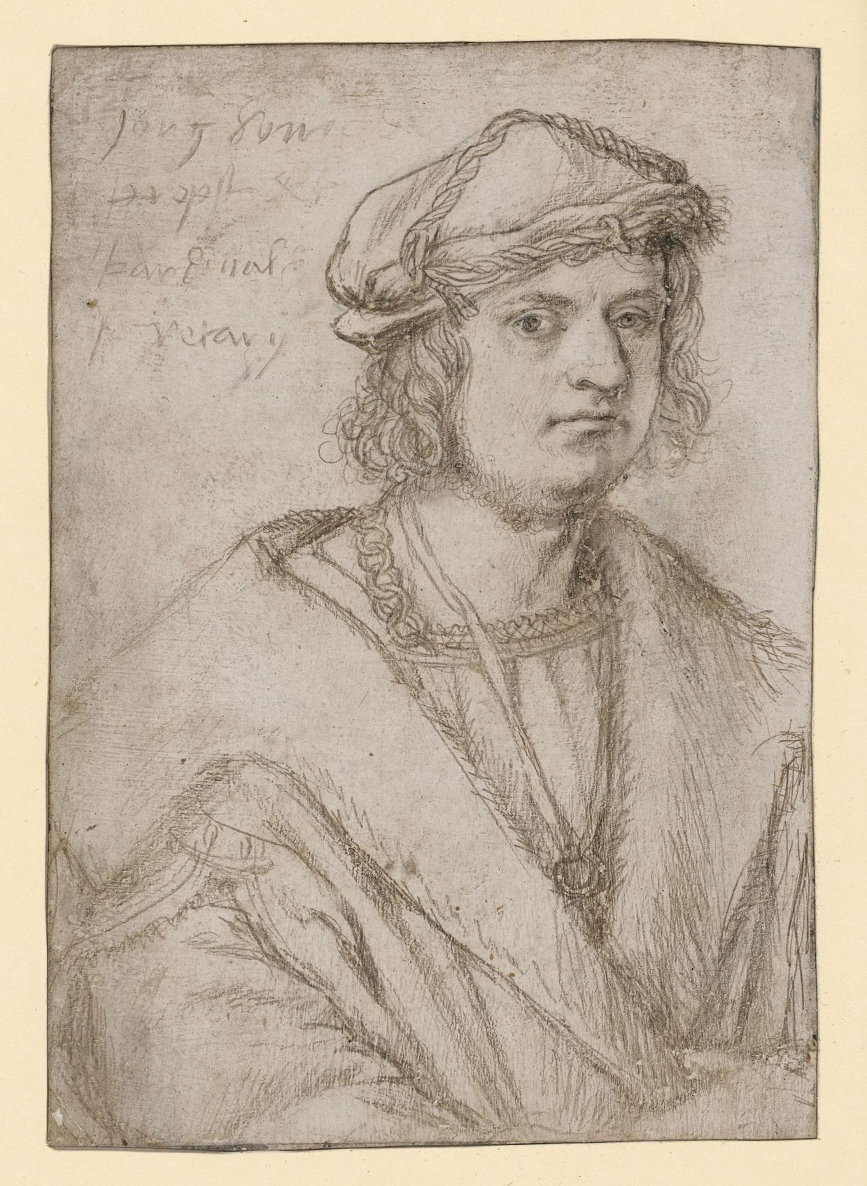 The initial drawing made for this portrait has survived, but it shows a quite different Jörg Saur from the figure we see in the painting. The preparatory drawing depicts a good-natured man, but in the panel painting he seems more distanced than in the sketch. This change may reflect the impression he wished to make.